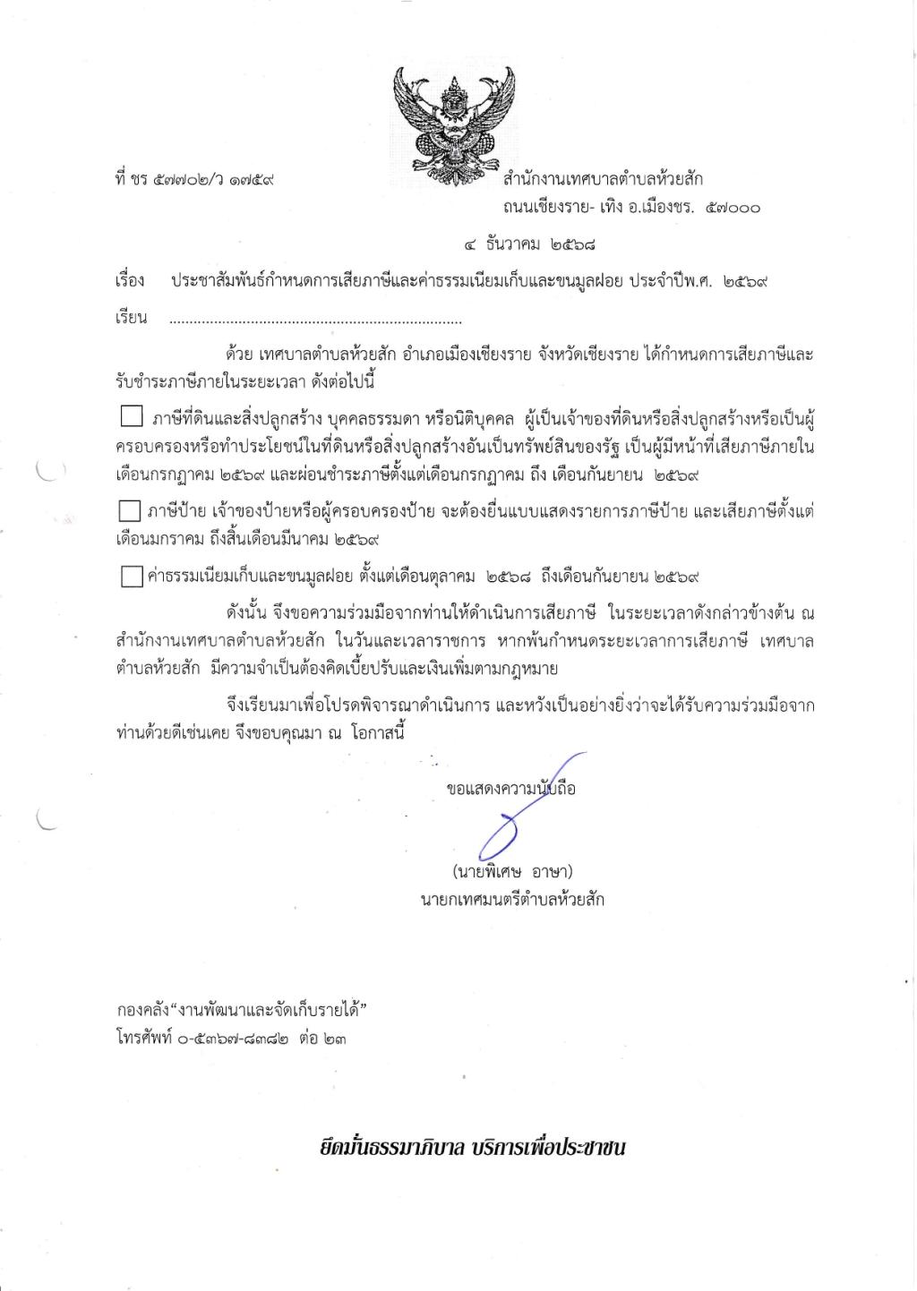 ประชาสัมพันธ์ การชำระภาษีป้าย ภาษีที่ดินและสิ่งปลูกสร้าง และค่าธรรมเนียมตามพ.ร.บ.สาธารณสุข ประจำปี พ.ศ.2569 |