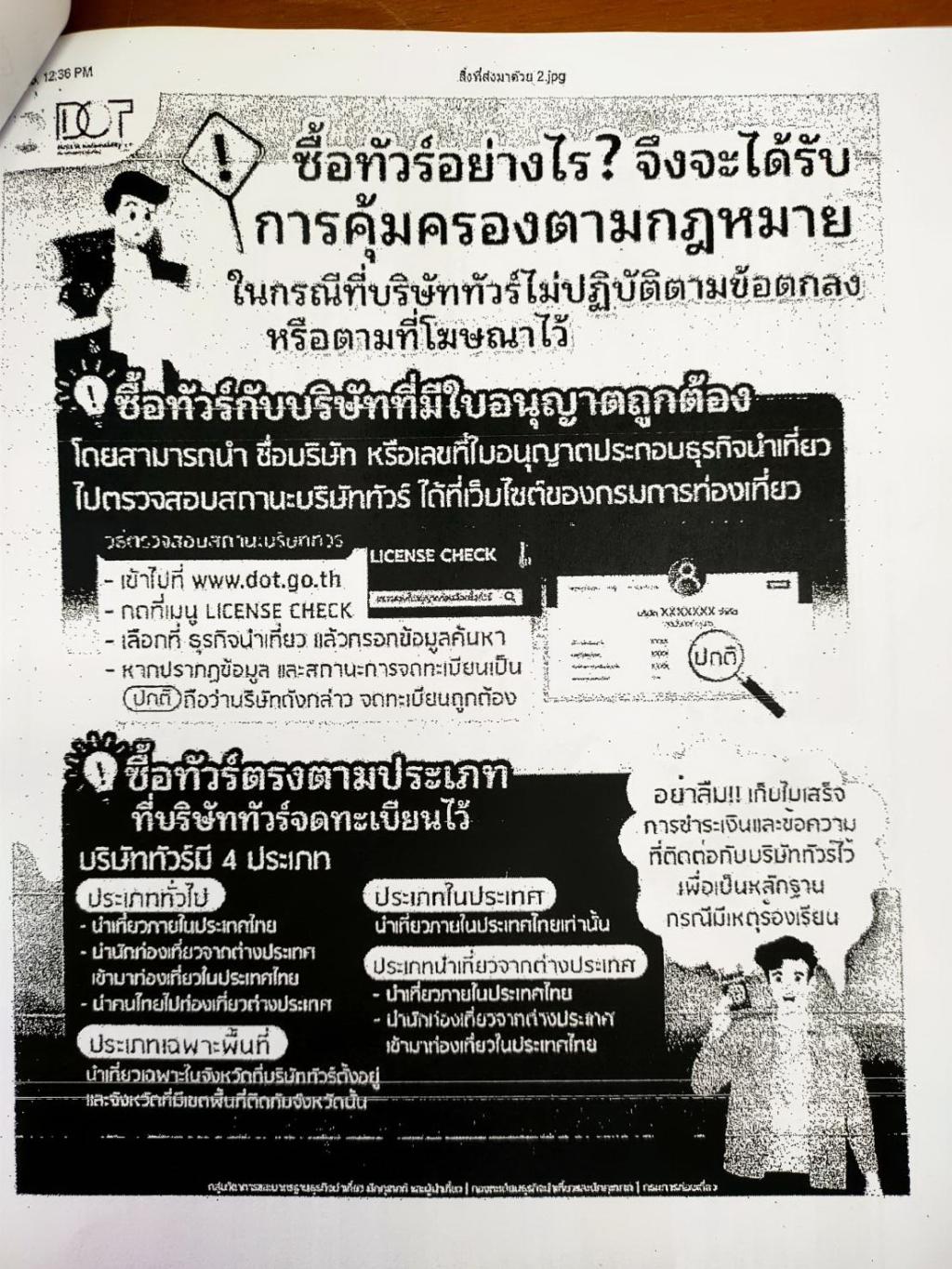 งานสนับสนุนการประชาสัมพันธ์ ฝ่ายอำนวยการ สำนักปลัด เทศบาลตำบลห้วยสัก ได้รับแจ้งจากศูนย์ดำรงธรรมอำเภอเมืองเชียงราย แจ้งประชาสัมพันธ์ข้อมูลเกี่ยวกับการซื้อรายการนำเที่ยวเพื่อเดินทาง หรือร้องเรียนเกี่ยวกับการประกอบธุรกิจนำเที่ยว รายละเอียดตามเอกสารที่แนบมานี้