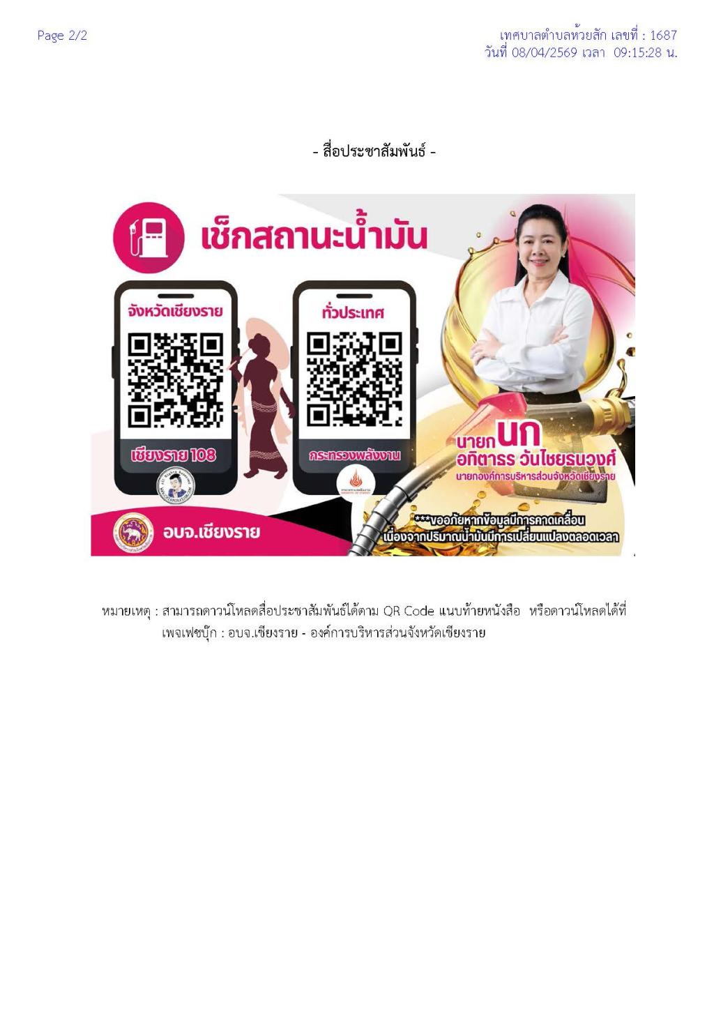 องค์การบริหารส่วนจังหวัดเชียงรายแจ้งประชาสัมพันธ์ช่องทางตรวจสอบสถานะน้ำมันเชื้อเพลิงแบบเรียลไทม์...