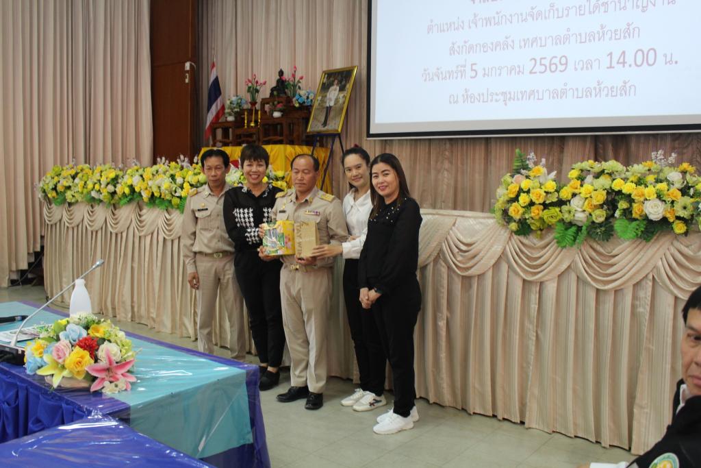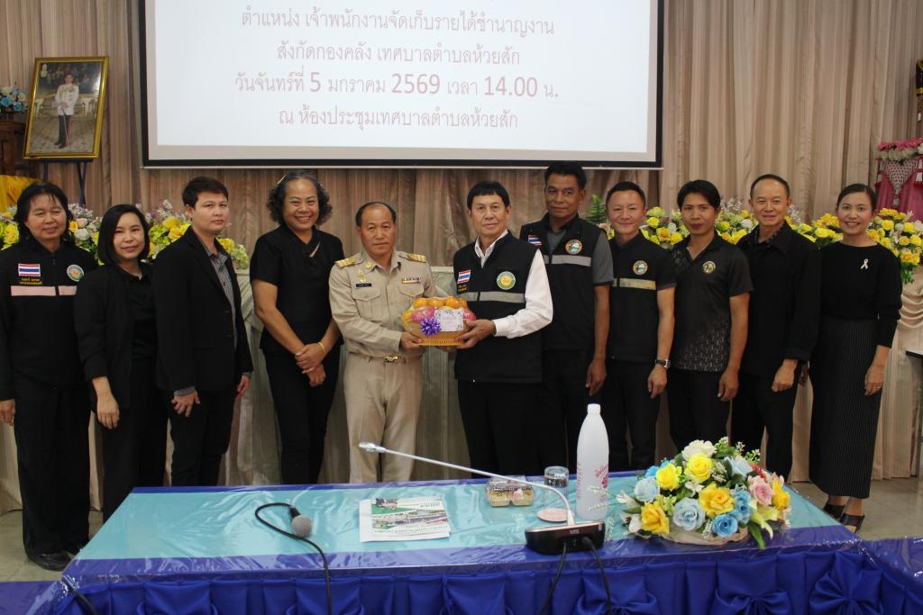 วันจันทร์ที่ 5 มกราคม 2569 นายพิเศษ อาษา นายกเทศมนตรีตำบล ห้วยสัก นางนงเยาว์ มหายศ รองนายกเทศมนตรี นายชูชาติ สุขสามปัน ประธานสภาเทศบาล นายนคร ฟองมา เลขานุการสภาเทศบาล พร้อมด้วยสมาชิกสภาเทศบาล หัวหน้าส่วนราชการ พนักงานเจ้าหน้าที่กองคลัง ร่วมให้การต้อนรับคณะจากเทศบาลตำบลแม่ยาว ตำบลแม่ยาว อำเภอเมืองเชียงราย จังหวัดเชียงราย ในโอกาสเดินทางมาส่ง จ่าสิบเอก คมกริช มหิงษา เจ้าพนักงานจัดเก็บรายได้ชำนาญงาน เพื่อมาปฏิบัติงานสังกัดกองคลัง เทศบาลตำบลห้วยสัก