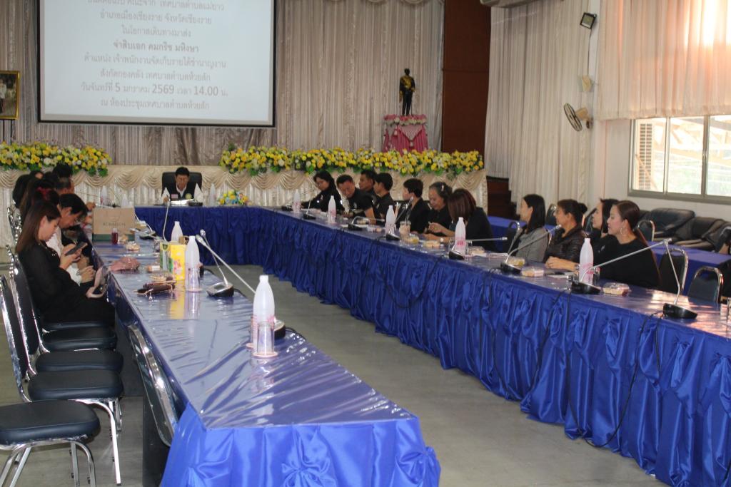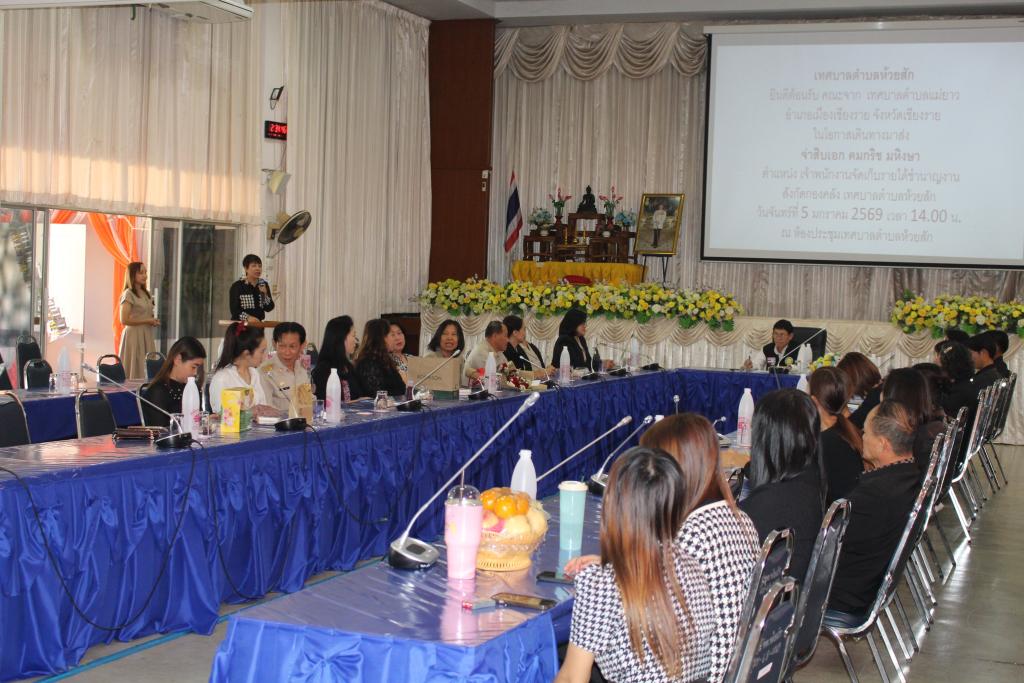 วันจันทร์ที่ 5 มกราคม 2569 นายพิเศษ อาษา นายกเทศมนตรีตำบล ห้วยสัก นางนงเยาว์ มหายศ รองนายกเทศมนตรี นายชูชาติ สุขสามปัน ประธานสภาเทศบาล นายนคร ฟองมา เลขานุการสภาเทศบาล พร้อมด้วยสมาชิกสภาเทศบาล หัวหน้าส่วนราชการ พนักงานเจ้าหน้าที่กองคลัง ร่วมให้การต้อนรับคณะจากเทศบาลตำบลแม่ยาว ตำบลแม่ยาว อำเภอเมืองเชียงราย จังหวัดเชียงราย ในโอกาสเดินทางมาส่ง จ่าสิบเอก คมกริช มหิงษา เจ้าพนักงานจัดเก็บรายได้ชำนาญงาน เพื่อมาปฏิบัติงานสังกัดกองคลัง เทศบาลตำบลห้วยสัก ณ ห้องประชุมเทศบาลตำบลห้วยสัก อำเภอเมืองเชียงราย จังหวัดเชียงราย