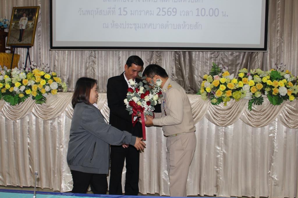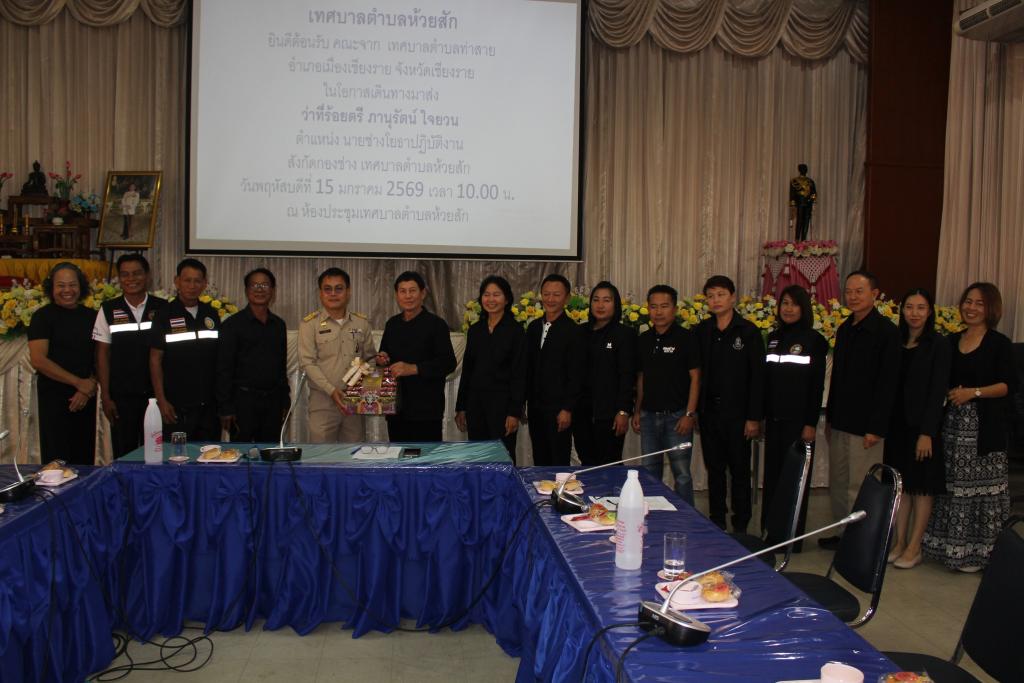วันพฤหัสบดีที่ 15 มกราคม 2569 นายพิเศษ อาษา นายกเทศมนตรีตำบลห้วยสัก นางนงเยาว์ มหายศ รองนายกเทศมนตรี นายวุฒิพงษ์ สุภาวรรณ เลขานุการนายกเทศมนตรี นายอินเทพ อวดลึก ที่ปรึกษานายกเทศมนตรี นายชูชาติ สุขสามปัน ประธานสภาเทศบาล นายนคร ฟองมา เลขานุการสภาเทศบาล พร้อมด้วยสมาชิกสภาเทศบาล หัวหน้าส่วนราชการ พนักงานเจ้าหน้าที่กองช่าง ร่วมให้การต้อนรับคณะจากเทศบาลตำบลท่าสาย ตำบลท่าสาย อำเภอเมืองเชียงราย จังหวัดเชียงราย ในโอกาสเดินทางมาส่ง ว่าที่ร้อยตรี ภานุรัตน์ ใจยวน นายช่างโยธาปฏิบัติงาน เพื่อมาปฏิบัติงานสังกัดกองช่าง เทศบาลตำบลห้วยสัก ณ ห้องประชุมเทศบาลตำบลห้วยสัก อำเภอเมืองเชียงราย จังหวัดเชียงราย