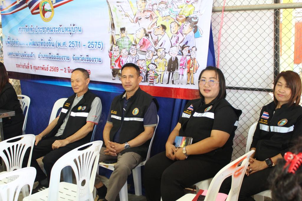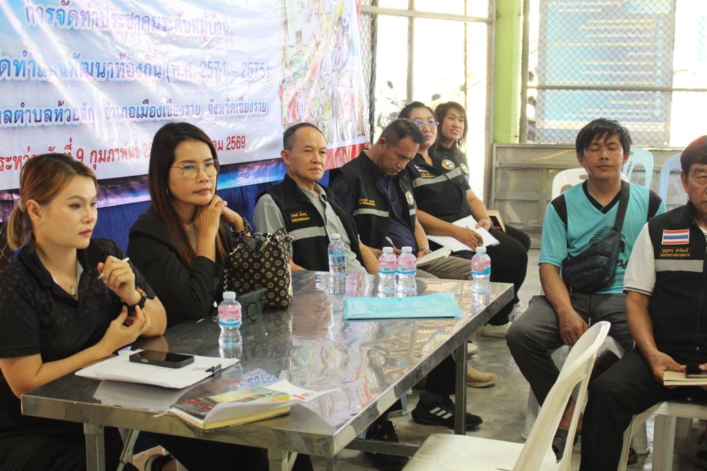 วันพฤหัสบดีที่ 12 กุมภาพันธ์ 2569 เวลา 13.30 น. นายพิเศษ อาษา นายกเทศมนตรีตำบลห้วยสัก นายยอด อินเรียน รองนายกเทศมนตรีตำบลห้วยสัก สมาชิกสภาเทศบาล สิบตำรวจตรีถนอม วุฒิ ปลัดเทศบาลตำบลห้วยสัก นายอาทิตย์ เป็กธนู หัวหน้าสำนักปลัดเทศบาล นางสาวทิพวัลย์ ดิษละ หัวหน้าฝ่ายบริหารงานทั่วไป นางสาวนุชนาถ วัชรจิตกุล นักวิเคราะห์นโยบายและแผน พร้อมผู้ช่วยนักวิเคราะห์นโยบายและแผน ลงพื้นที่บ้านหัวดง หมู่ที่ 11 ในการจัดทำประชาคมระดับหมู่บ้าน เพื่อจัดทำแผนพัฒนาท้องถิ่น (พ.ศ.2571 - พ.ศ.2575) โดยมีนายจรุณ กินร ผู้ใหญ่บ้าน หมู่ที่ 11 บ้านหัวดง ร่วมจัดทำแผนและอำนวยความสะดวกให้กับเจ้าหน้าที่เทศบาลตำบลห้วยสัก ณ อาคารอเนกประสงค์บ้านหัวดง หมู่ที่ 11 อำเภอเมืองเชียงราย จังหวัดเชียงราย