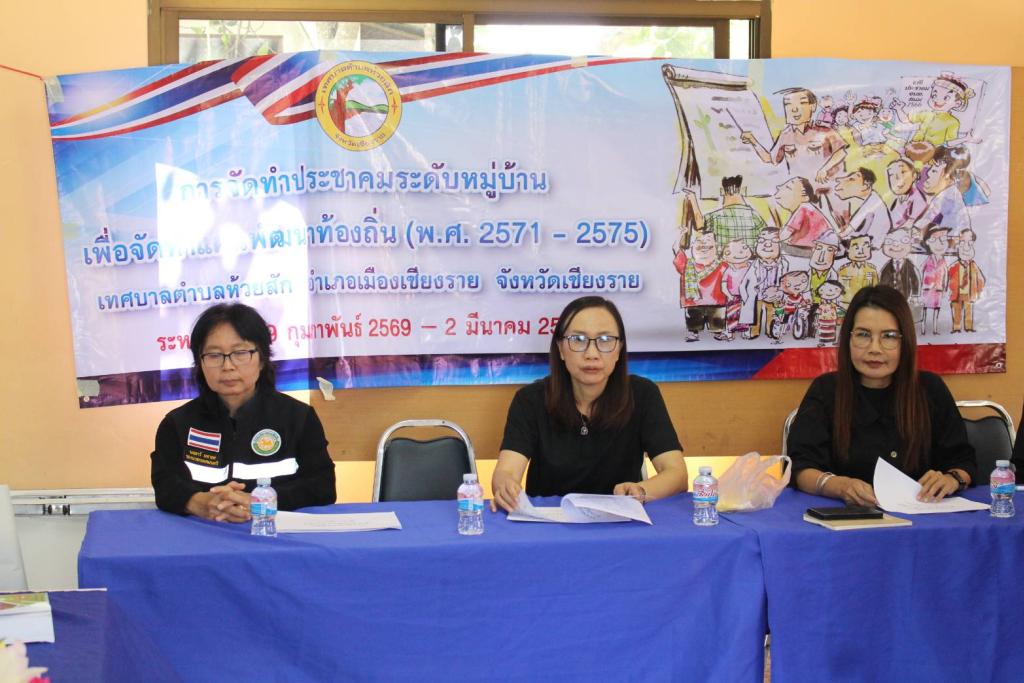 วันศุกร์ที่ 13 กุมภาพันธ์ 2569 เวลา 13.30 น. นายพิเศษ อาษา นายกเทศมนตรีตำบลห้วยสัก นางนงเยาว์ มหายศ รองนายกเทศมนตรีตำบลห้วยสัก นายวุฒิพงษ์ สุภาวรรณ เลขานุการนายกเทศมนตรี นายชูชาติ สุขสามปัน ประธานสภาเทศบาลตำบลห้วยสัก สมาชิกสภาเทศบาล นางสาวทิพวัลย์ ดิษละ หัวหน้าฝ่ายบริหารงานทั่วไป นางสาวนุชนาถ วัชรจิตกุล นักวิเคราะห์นโยบายและแผน พร้อมผู้ช่วยนักวิเคราะห์นโยบายและแผน ลงพื้นที่บ้านป่าก๊อ หมู่ที่ 30 ในการจัดทำประชาคมระดับหมู่บ้าน เพื่อจัดทำแผนพัฒนาท้องถิ่น (พ.ศ.2571 - พ.ศ.2575) โดยมีนายณัฐพงศ์ หินใหญ่ ผู้ใหญ่บ้าน หมู่ที่ 30 บ้านป่าก๊อ ร่วมจัดทำแผนและอำนวยความสะดวกให้กับเจ้าหน้าที่เทศบาลตำบลห้วยสัก ณ อาคารอเนกประสงค์บ้านป่าก๊อ หมู่ที่ 30 อำเภอเมืองเชียงราย จังหวัดเชียงราย