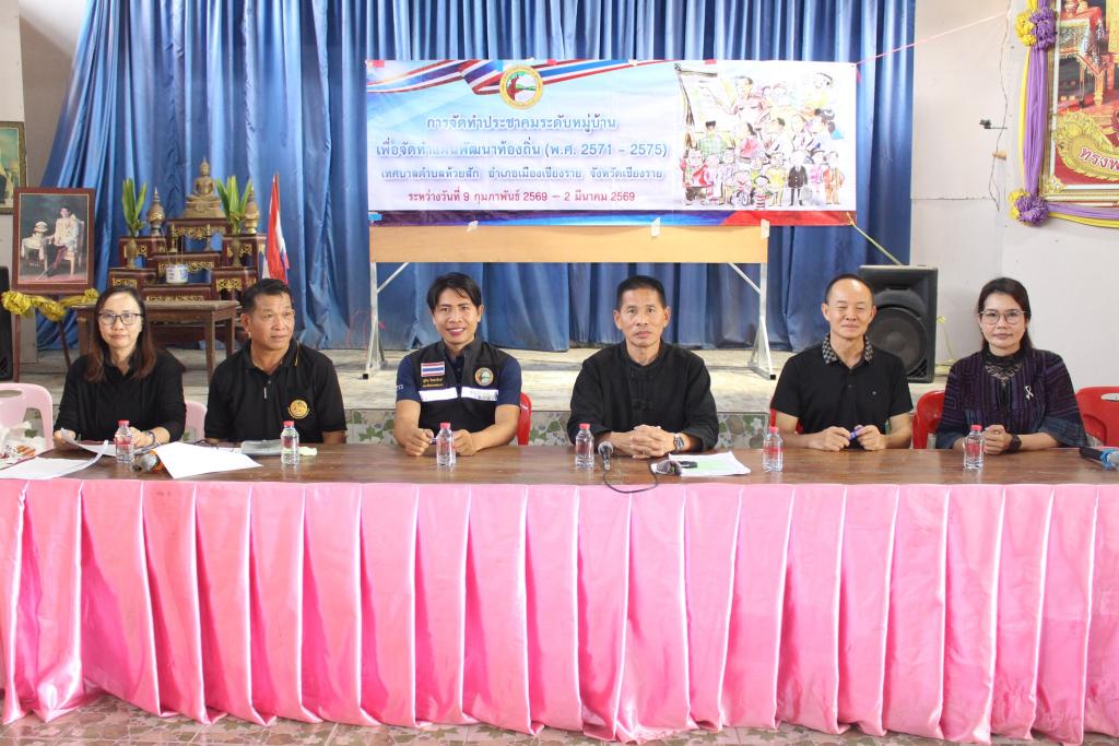 วันศุกร์ที่ 20 กุมภาพันธ์ 2569 เวลา 13.30 น. นายพิเศษ อาษา นายกเทศมนตรีตำบลห้วยสัก นายชูชาติ สุขสามปัน ประธานสภาเทศบาล สมาชิกสภาเทศบาล สิบตำรวจตรีถนอม วุฒิ ปลัดเทศบาล นายอาทิตย์ เป็กธนู หัวหน้าสำนักปลัดเทศบาล นางสาวทิพวัลย์ ดิษละ หัวหน้าฝ่ายบริหารงานทั่วไป นางสาวนุชนาถ วัชรจิตกุล นักวิเคราะห์นโยบายและแผนชำนาญการ พร้อมผู้ช่วยนักวิเคราะห์นโยบายและแผน ลงพื้นที่บ้านร่องเผียว หมู่ที่ 18 ในการจัดทำประชาคมระดับหมู่บ้าน เพื่อจัดทำแผนพัฒนาท้องถิ่น (พ.ศ.2571 - พ.ศ.2575) โดยมีนายคำมูล วรรณโน ผู้ใหญ่บ้าน หมู่ที่ 18 บ้านร่องเผียว ร่วมจัดทำแผนและอำนวยความสะดวกให้กับเจ้าหน้าที่เทศบาลตำบลห้วยสัก ณ อาคารอเนกประสงค์บ้านร่องเผียว หมู่ที่ 18 อำเภอเมืองเชียงราย จังหวัดเชียงราย