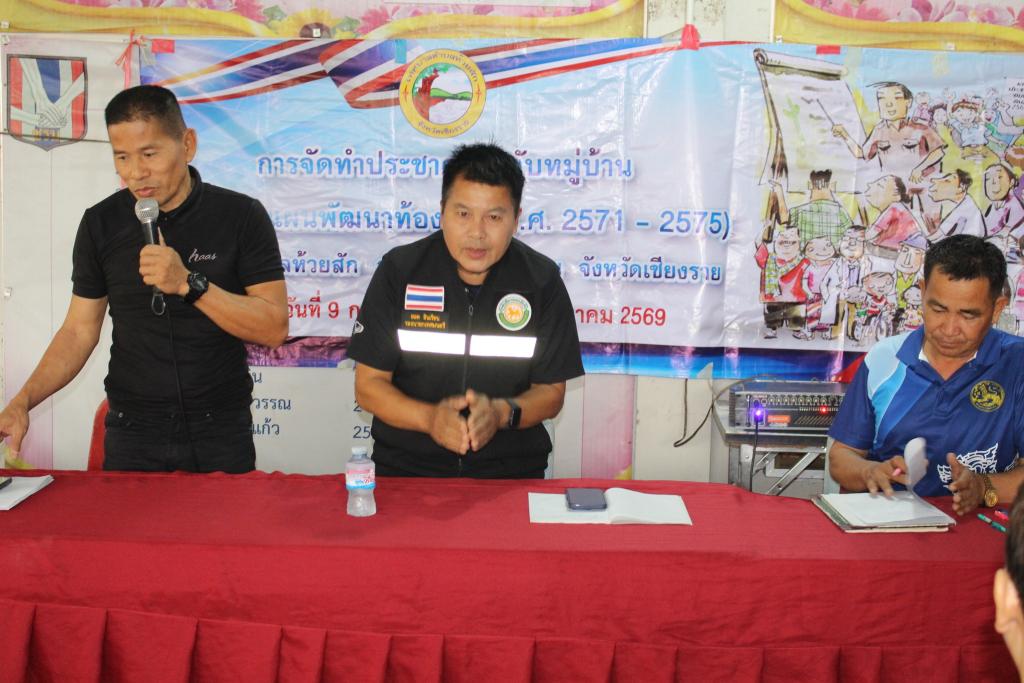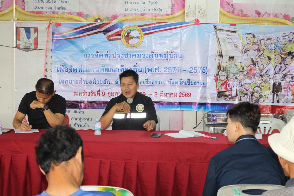 วันอังคารที่ 24 กุมภาพันธ์ 2569 เวลา 09.00 น. นายยอด อินเรียน รองนายกเทศมนตรีตำบลห้วยสัก นายชูชาติ สุขสามปัน ประธานสภาเทศบาลตำบลห้วยสัก สมาชิกสภาเทศบาล สิบตำรวจตรีถนอม วุฒิ ปลัดเทศบาล นางสาวอัชรีย์ อะโนราช รองปลัดเทศบาล นายอาทิตย์ เป็กธนู หัวหน้าสำนักปลัด นางสาวทิพวัลย์ ดิษละ หัวหน้าฝ่ายบริหารงานทั่วไป นางสาวนุชนาถ วัชรจิตกุล นักวิเคราะห์นโยบายและแผน พร้อมผู้ช่วยนักวิเคราะห์นโยบายและแผน ลงพื้นที่บ้านร่องเบ้อ หมู่ที่ 29 ในการจัดทำประชาคมระดับหมู่บ้าน เพื่อจัดทำแผนพัฒนาท้องถิ่น (พ.ศ.2571 - พ.ศ.2575) โดยมีนายเสริม ใจแก้ว ผู้ใหญ่บ้าน หมู่ที่ 29 บ้านร่องเบ้อ ร่วมจัดทำแผนและอำนวยความสะดวกให้กับเจ้าหน้าที่เทศบาลตำบลห้วยสัก ณ อาคารอเนกประสงค์บ้านร่องเบ้อ หมู่ที่ 29 อำเภอเมืองเชียงราย จังหวัดเชียงราย