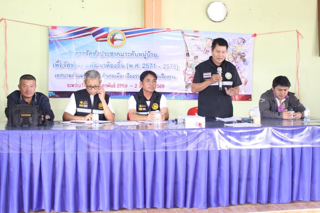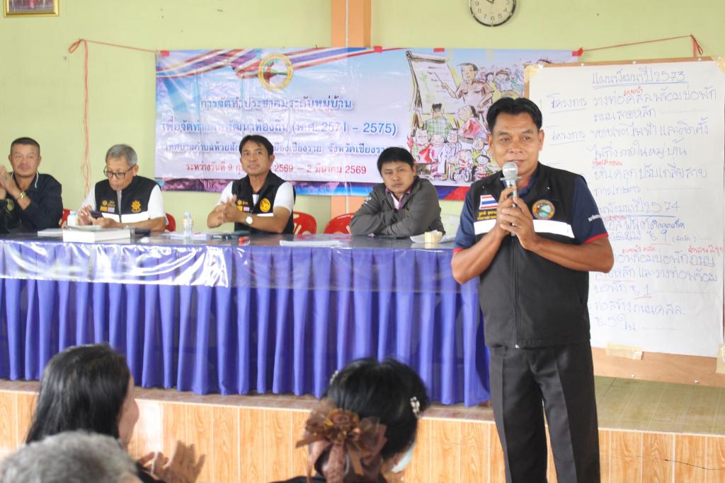 วันพฤหัสบดีที่ 26 กุมภาพันธ์ 2569 เวลา 09.00 น. นายยอด อินเรียน รองนายกเทศมนตรีตำบลห้วยสัก นายชูชาติ สุขสามปัน ประธานสภาเทศบาลตำบลห้วยสัก สมาชิกสภาเทศบาล นายอาทิตย์ เป็กธนู หัวหน้าสำนักปลัด นางสาวนุชนาถ วัชรจิตกุล นักวิเคราะห์นโยบายและแผน พร้อมผู้ช่วยนักวิเคราะห์นโยบายและแผน ลงพื้นที่บ้านดงป่าเหมี้ยง หมู่ที่ 10 ในการจัดทำประชาคมระดับหมู่บ้าน เพื่อจัดทำแผนพัฒนาท้องถิ่น (พ.ศ.2571 - พ.ศ.2575) โดยมีนายอาทินันท์ ผิวเขียว ผู้ใหญ่บ้าน หมู่ที่ 10 บ้านดงป่าเหมี้ยง ร่วมจัดทำแผนและอำนวยความสะดวกให้กับเจ้าหน้าที่เทศบาลตำบลห้วยสัก ณ อาคารอเนกประสงค์บ้านดงป่าเหมี้ยง หมู่ที่ 10 อำเภอเมืองเชียงราย จังหวัดเชียงราย