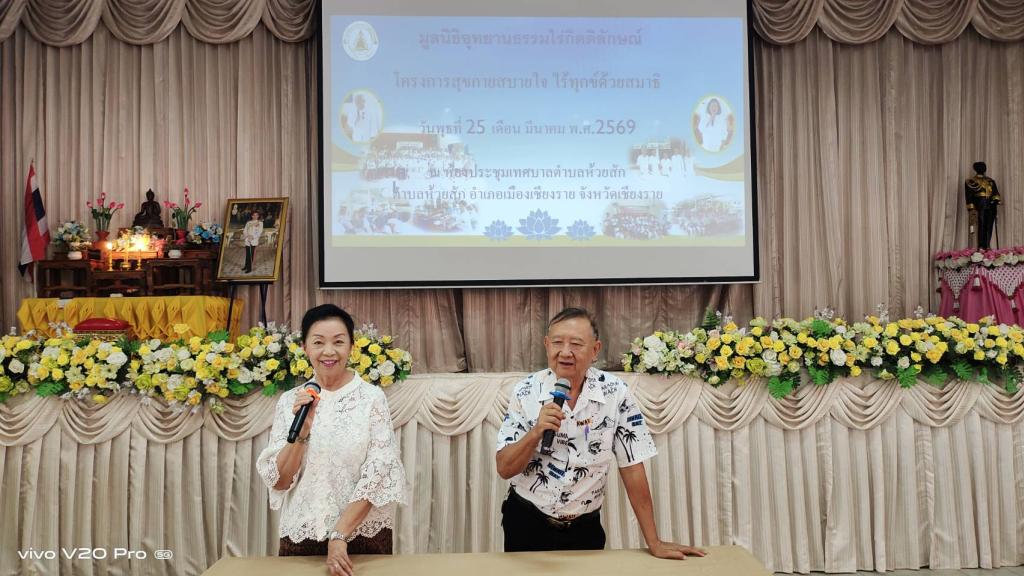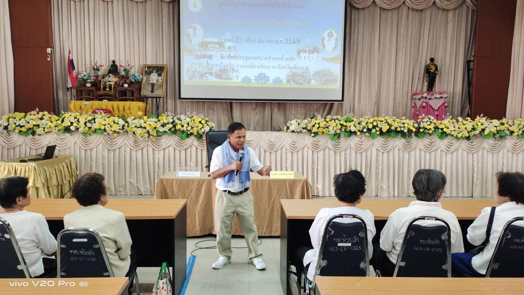 วันพุธที่ 25 มีนาคม 2569 นางนงเยาว์ มหายศ รองนายกเทศมนตรีตำบลห้วยสัก เข้าร่วมอบรมตามโครงการสุขกายสบายใจ ไร้ทุกข์ด้วยสมาธิ จัดโดย มูลนิธิอุทยานธรรมไร่กิตติลักษณ์ กลุ่มเป้าหมายเป็นกลุ่มผู้สูงอายุในพื้นที่ตำบลห้วยสัก ณ ห้องประชุมเทศบาลตำบลห้วยสัก อำเภอเมืองเชียงราย จังหวัดเชียงราย