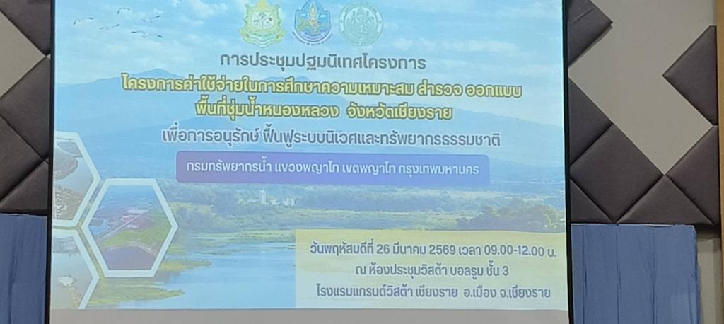 วันพฤหัสบดีที่ 26 มีนาคม 2569 นายพิเศษ อาษา นายกเทศมนตรีตำบลห้วยสัก นายยอด อินเรียน นางนงเยาว์ มหายศ รองนายกเทศมนตรีตำบลห้วยสัก นายชูชาติ สุขสามปัน ประธานสภาเทศบาลตำบลห้วยสัก นายนคร ฟองมา เลขานุการสภาเทศบาล พร้อมด้วยนักวิชาการเกษตร ผู้ใหญ่บ้านตำบลห้วยสัก ร่วมกับ กรมทรัพยากรน้ำ แขวงพญาไท เขตพญาไท กรุงเทพมหานคร ร่วมประชุมปฐมนิเทศโครงการค่าใช้จ่ายในการศึกษาความเหมาะสม สำรวจ ออกแบบ พื้นที่ชุ่มน้ำหนองหลวง จังหวัดเชียงราย เพื่อการอนุรักษ์ ฟื้นฟูระบบนิเวศและทรัพยากรธรรมชาติ ณ ห้องประชุมวิสต้า บอลรูม ชั้น 3 โรงแรมแกรนด์วิสต้าเชียงราย อำเภอเมืองเชียงราย จังหวัดเชียงราย