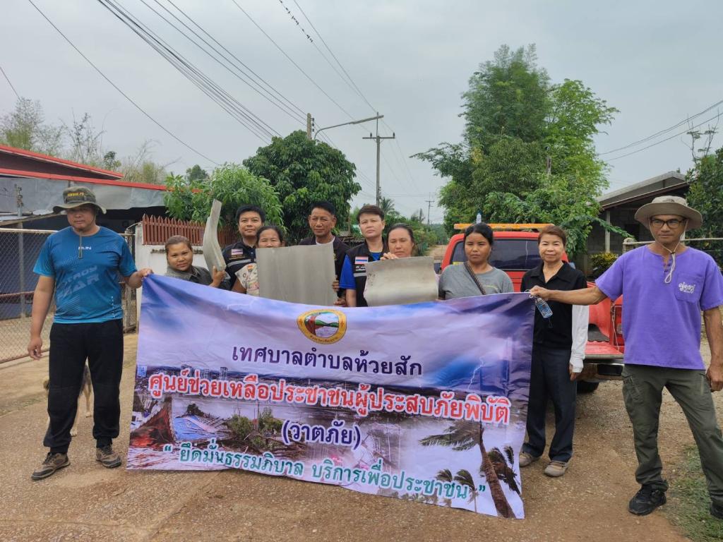 วันพุธที่ 29 เมษายน 2569 นายวุฒิพงษ์ สุภาวรรณ เลขานุการนายกเทศมนตรีตำบลห้วยสัก นายอินเทพ อวดลึก ที่ปรึกษานายกเทศมนตรีตำบลห้วยสัก นายชูชาติ สุขสามปัน ประธานสภาเทศบาลตำบลห้วยสัก นางสาวอัชรีย์ อะโนราช รองปลัดเทศบาลตำบลห้วยสัก นางสาวธนันยภรณ์ สัญญา หัวหน้าฝ่ายป้องกันและบรรเทาสาธารณภัย เจ้าหน้าที่ฝ่ายป้องกัน ได้ลงพื้นที่ตรวจสอบความเสียหายจากวาตภัย บ้านดำเนินสะดวก หมู่ที่ 31 บ้านได้รับความเสียหาย 4 ครัวเรือน เจ้าหน้าที่ได้ลงพื้นที่สำรวจให้ความช่วยเหลือให้กับผู้ประสบภัย