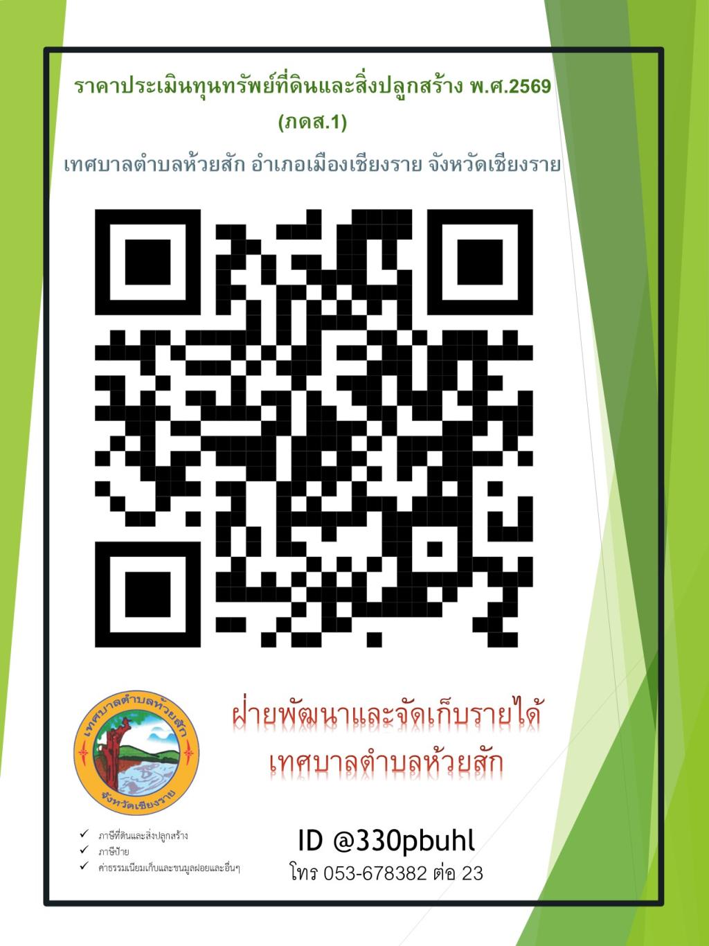 ฝ่ายพัฒนาและจัดเก็บรายได้ กองคลัง เทศบาลตำบลห้วยสัก แจ้งประชาสัมพันธ์ราคาประเมินทุนทรัพย์ที่ดินและสิ่งปลูกสร้าง (ภดส.1) สามารถดูได้จากลิงค์และคิวอาโค้ดท้ายนี้ https://docs.google.com/.../1lCJ7-eeYQ.../edit......